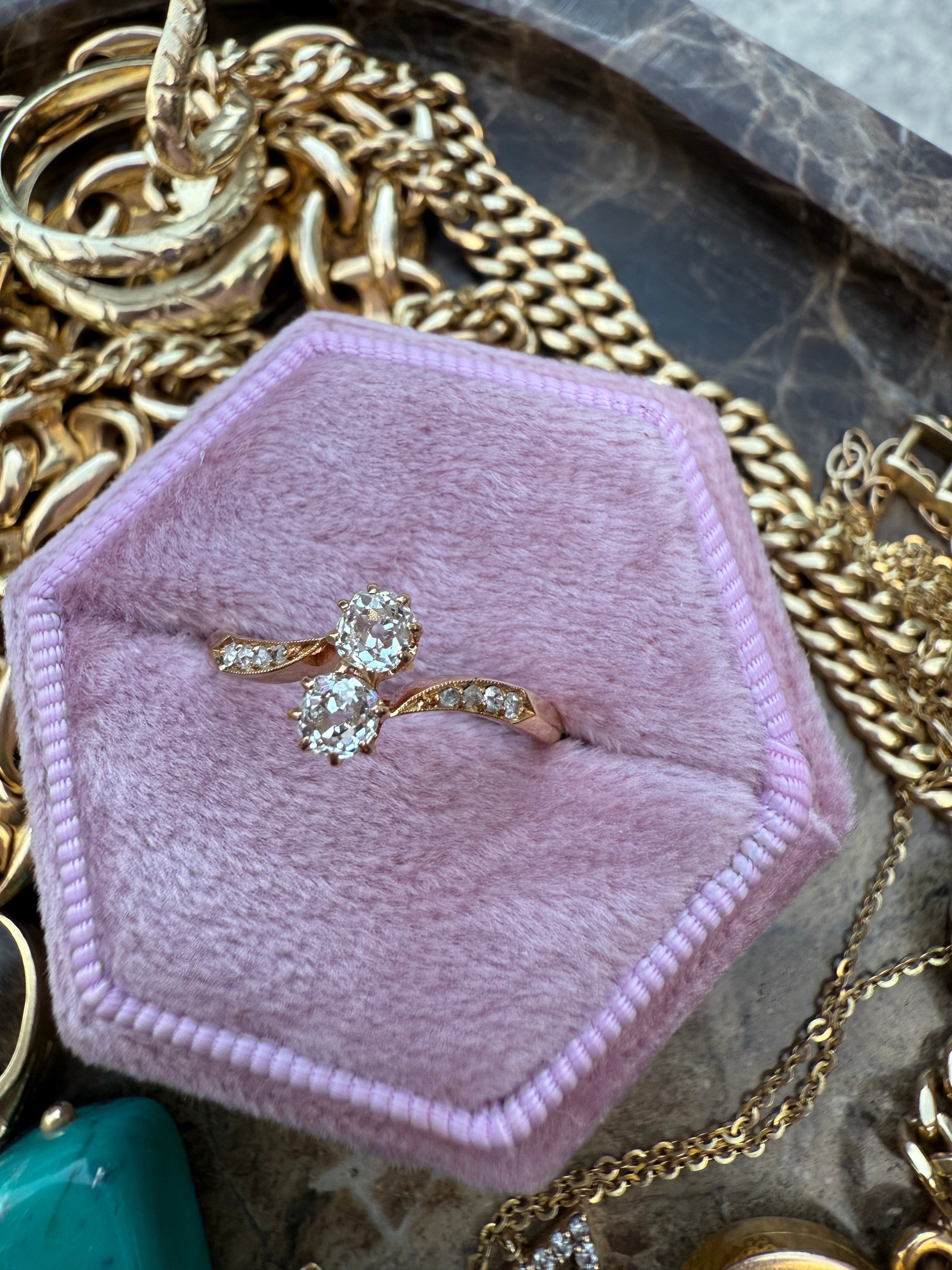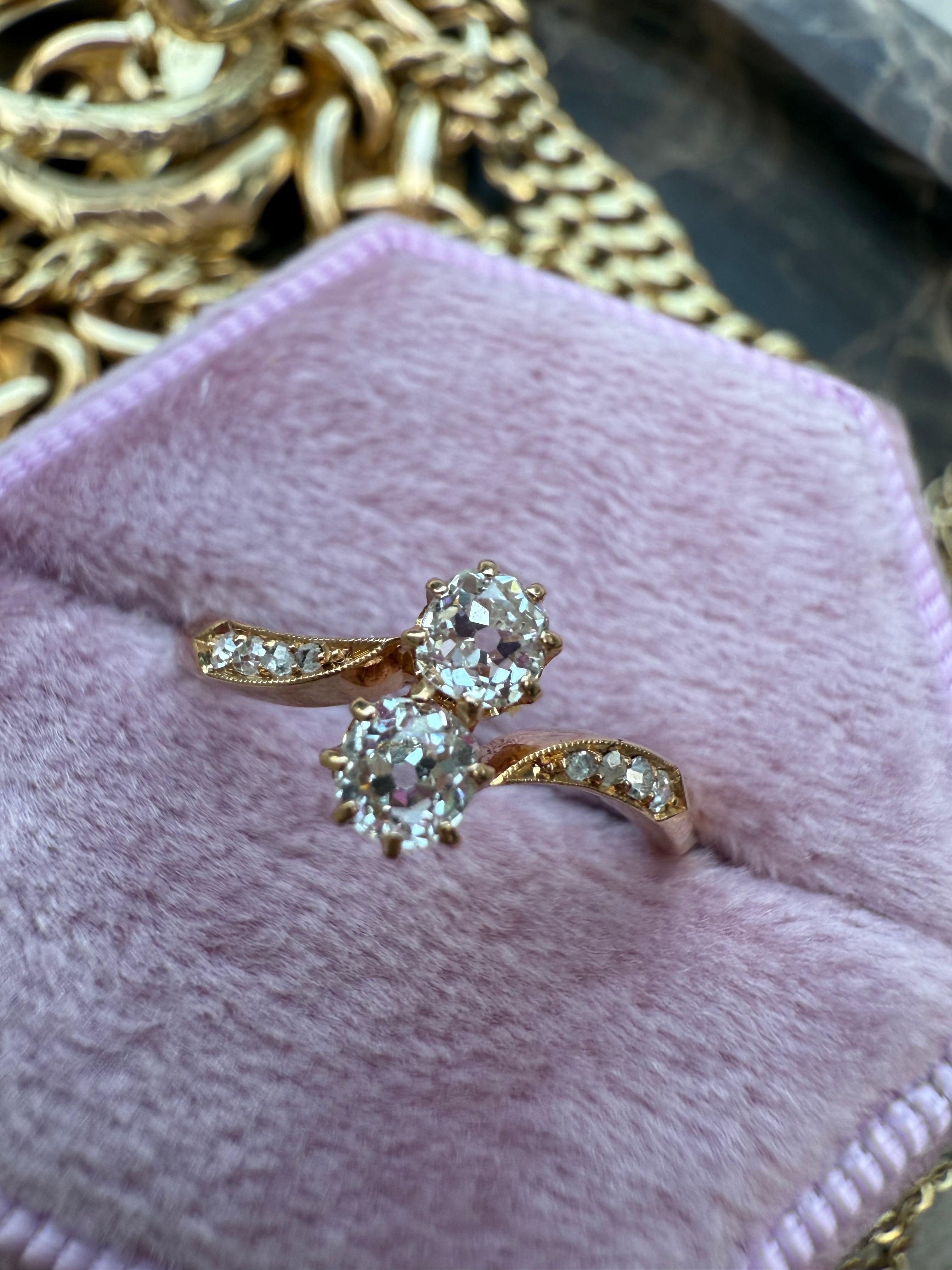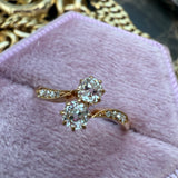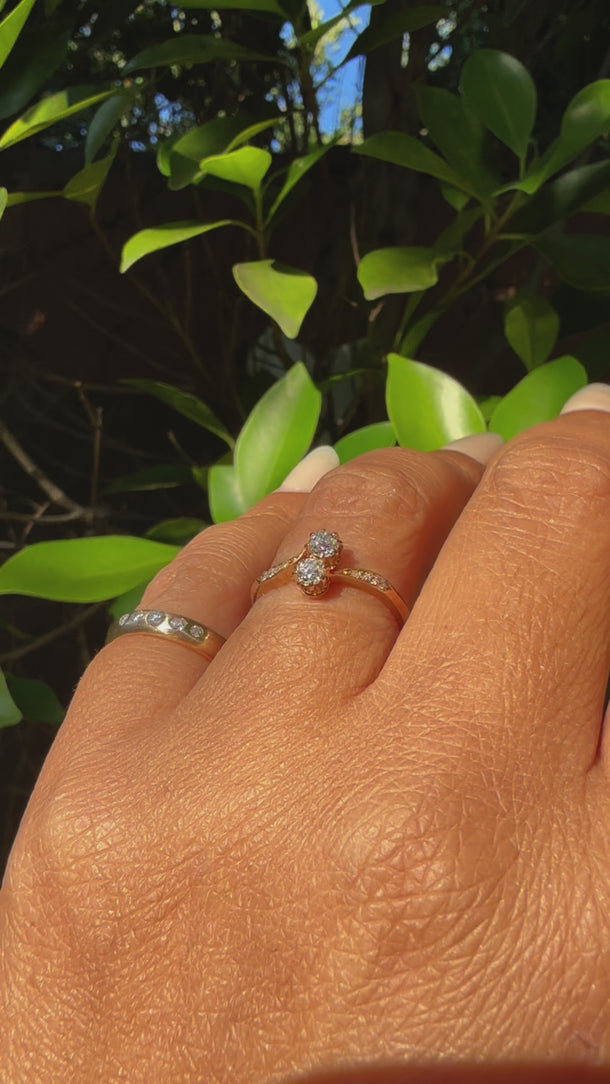 Vintage 18k yellow gold ring. Two Old European Cut Diamonds 0.24tcw. 8 single cut diamonds 0.08tcw.